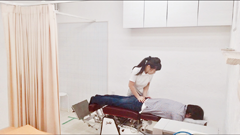 一つはブロックと呼ばれる三角形の枕のようなものを使い、その方自身の体重を利用した矯正です。年配の方から子供さんまで、幅広い年代の方々にお受けいだだけます。